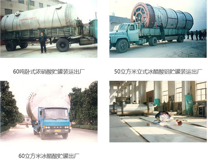 工業(yè)純鋁板制汽車運輸槽車、臥式、立式貯罐、高位槽。(主要用于貯運 濃硝酸、冰醋酸等腐蝕液體)不銹鋼、碳鋼制各種汽車運輸槽車,臥式、 立式貯槽,高位槽計量槽。特殊規(guī)格可按用戶需求設計、制造。